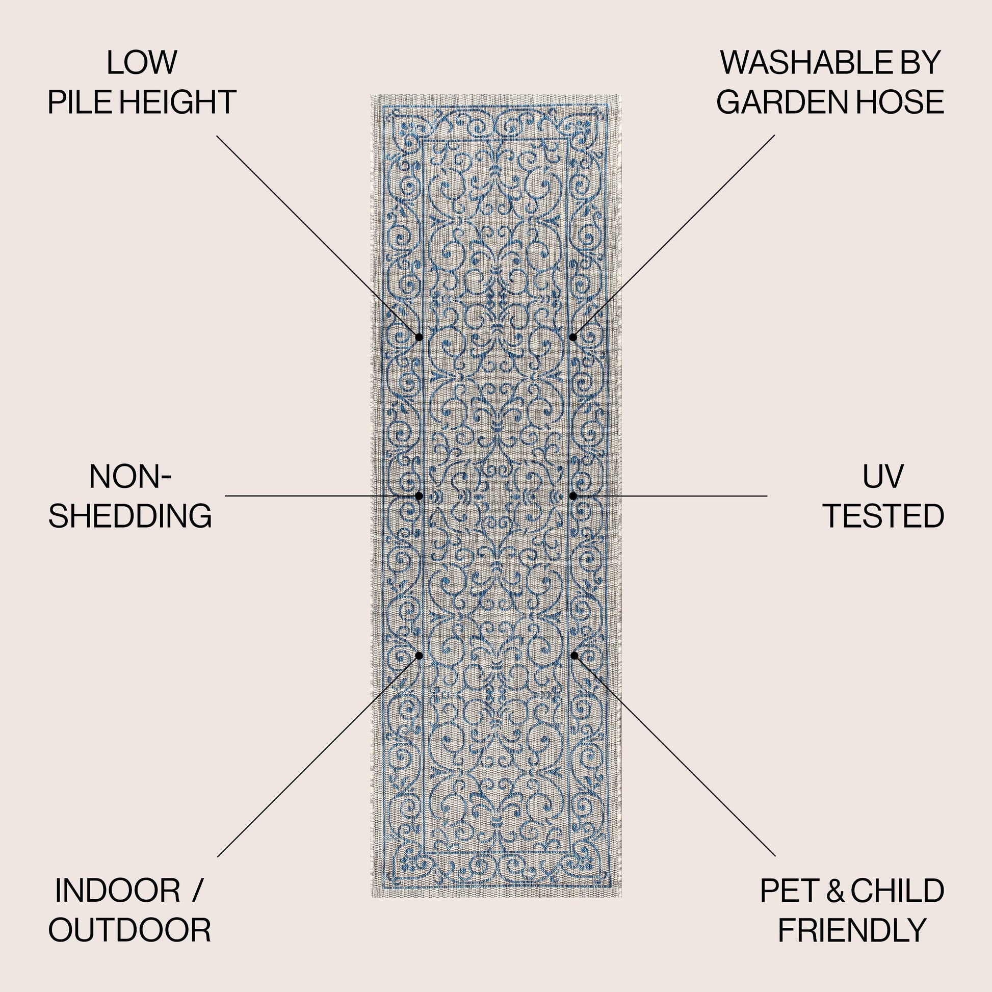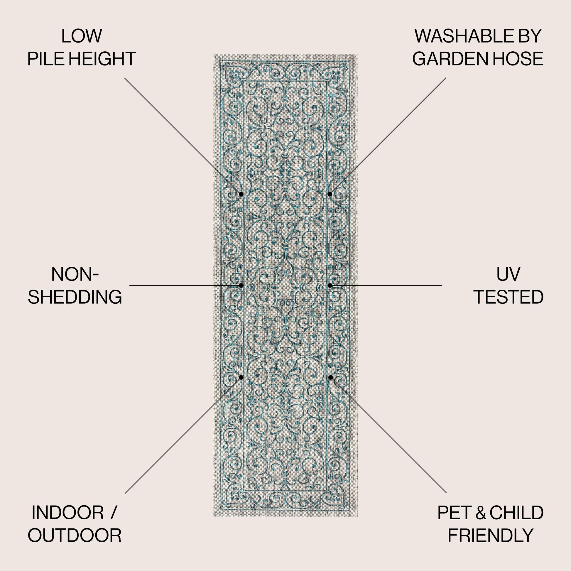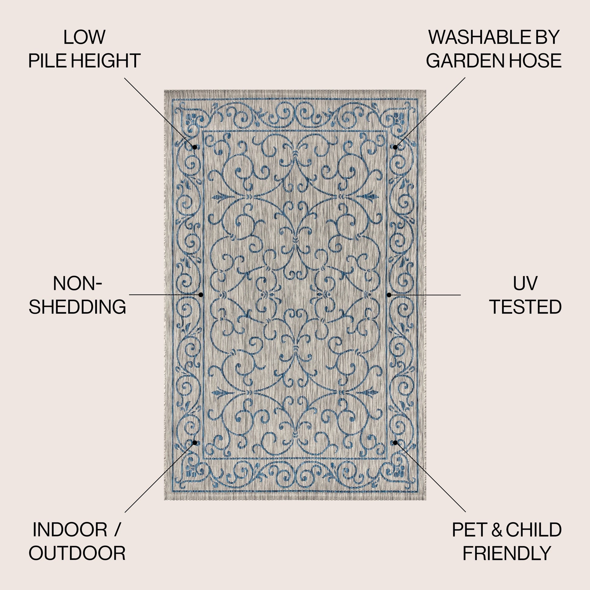 - Includes 1 indoor/outdoor area rug only