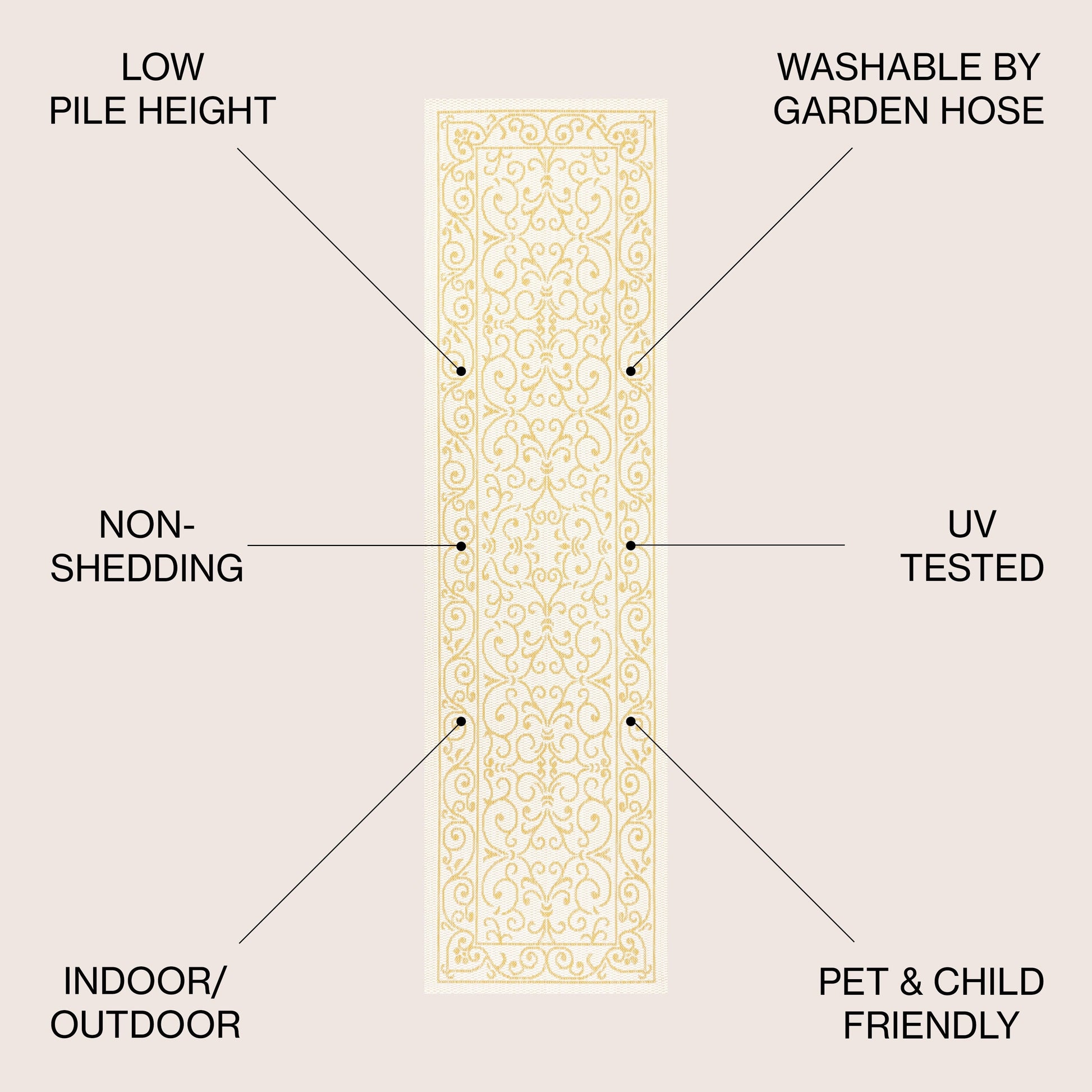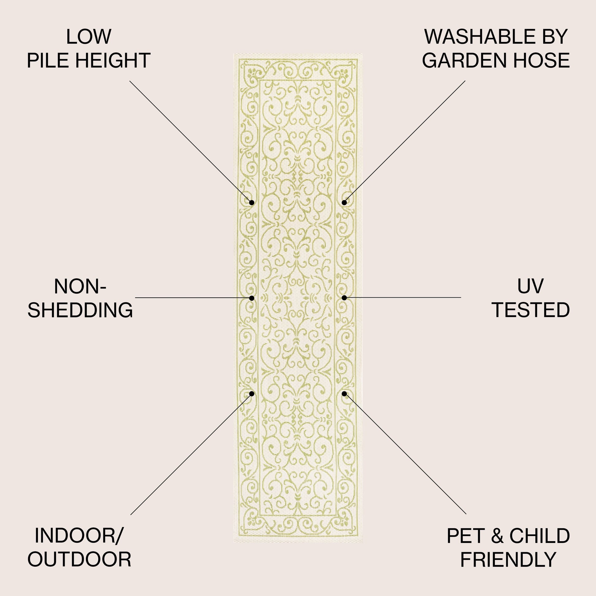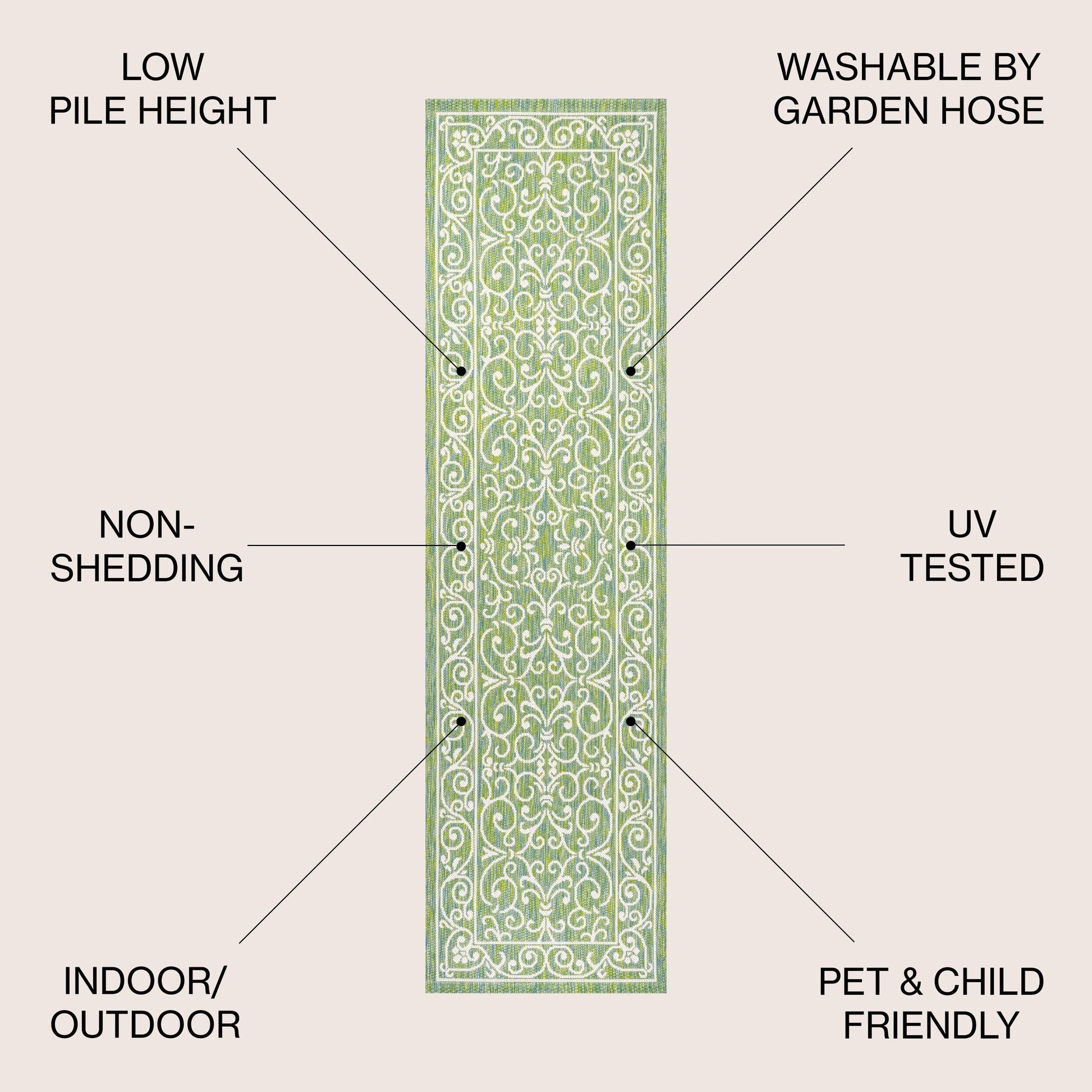 - Runner: 2 feet wide x 10 feet long x 0.19-inch pile height