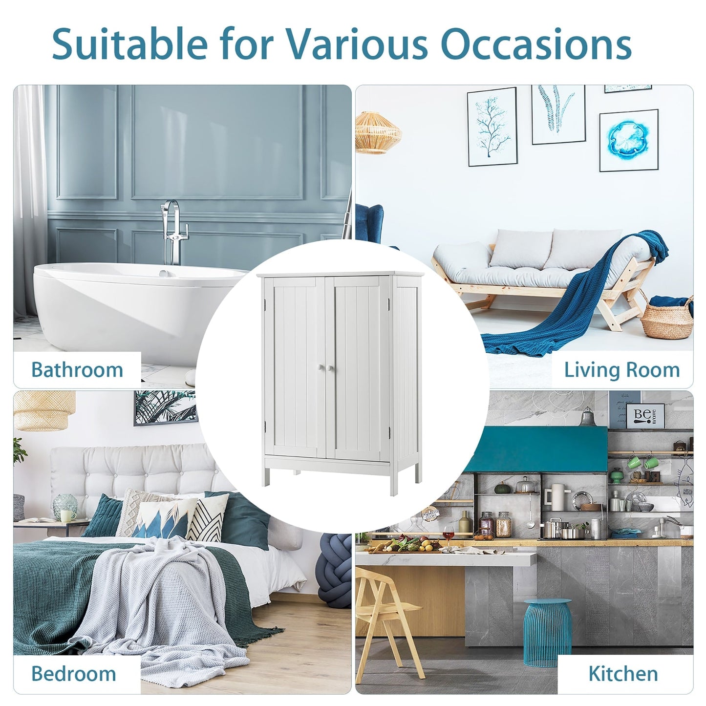 Bathroom Storage Cabinet with Double Doors Wooden Floor...