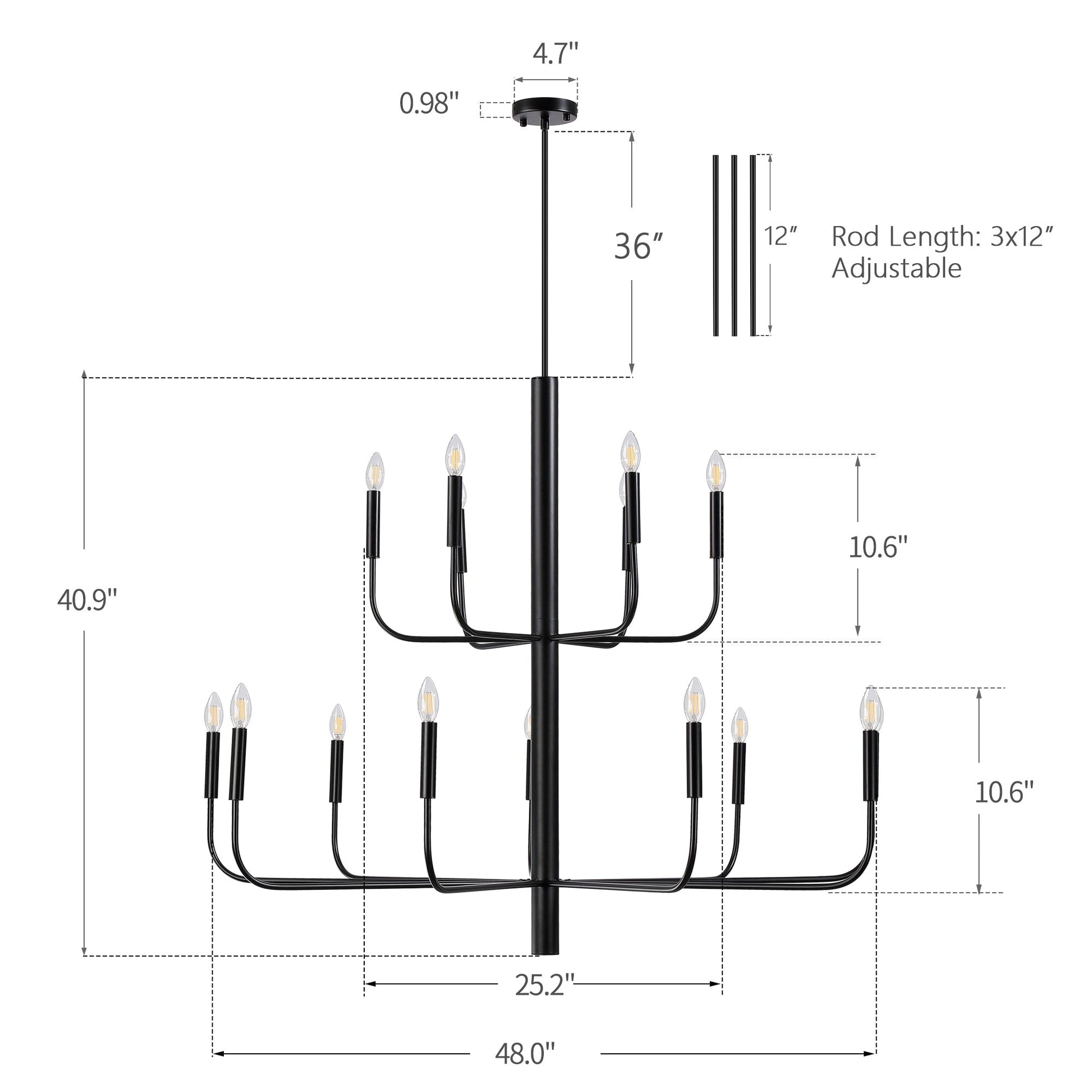 • Éclairage : 15 ampoules requises, douille E12, 60W 120V, différents choix (ampoule non incluse)