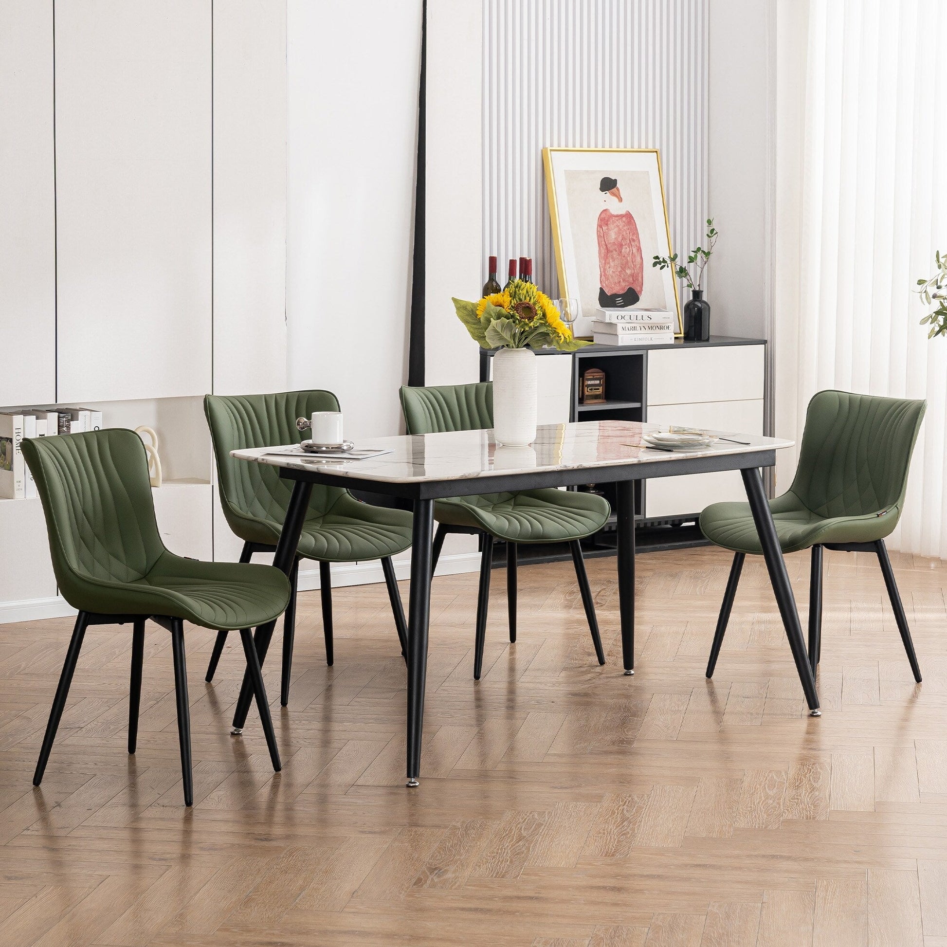 💞【Comfortable Design】: The leather dining chairs have a fan club of people who are head over heels in love with them. Those who gather around the table for a delicious meal and lively conversation rave about how comfortable these chairs are. You'll have guests begging for more just to experience the luxurious comfort and bask in the glorious ambiance of your room.
