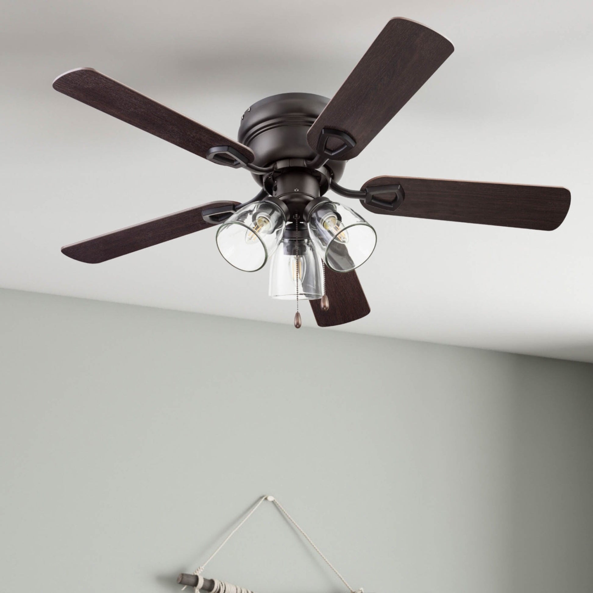 • EASY TO USE: This flushmount ceiling fan uses pull chains for quick and easy on and off adjustments.