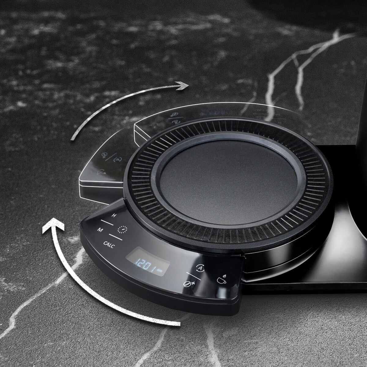 • Revolving dashboard allows the coffee maker to be placed in different orientations on the countertop. Designed for left and right-handed person.