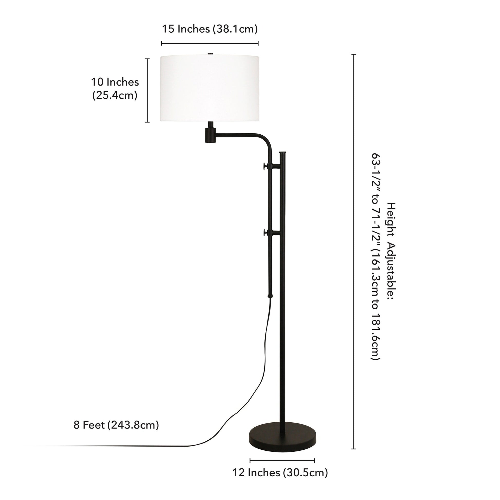 Crafted with industrial charm, this adjustable floor lamp will beautifully illuminate your space. The lamp is crafted from steel, and features a bent arm that attaches to the thin center column, allowing you to adjust the height of the light. A chiffon white linen shade beautiful diffuses the glow from the single bulb and adds an extra touch of mod style to the chic design.