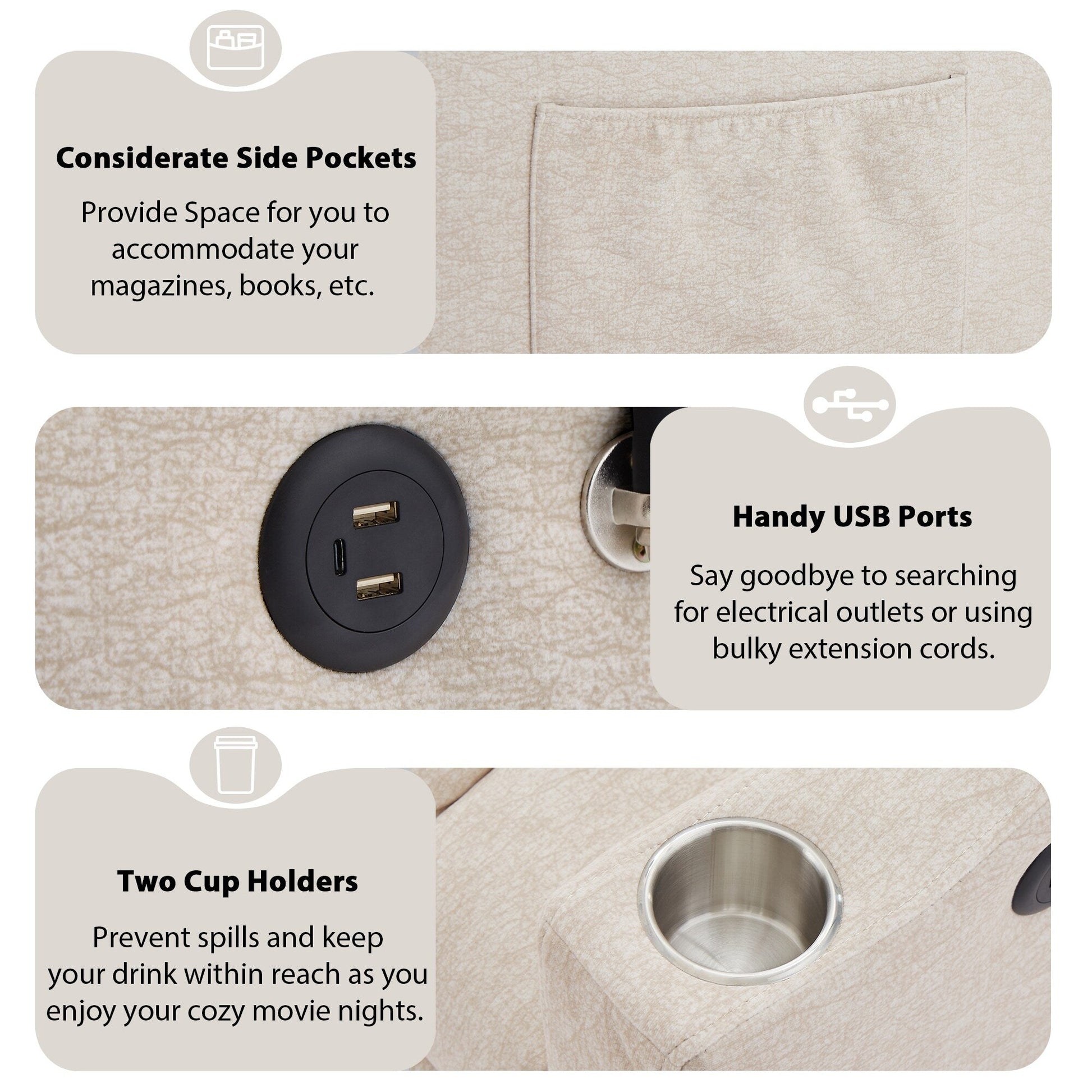 Canapé-lit convertible Roomfitters avec ports USB, poches latérales,...