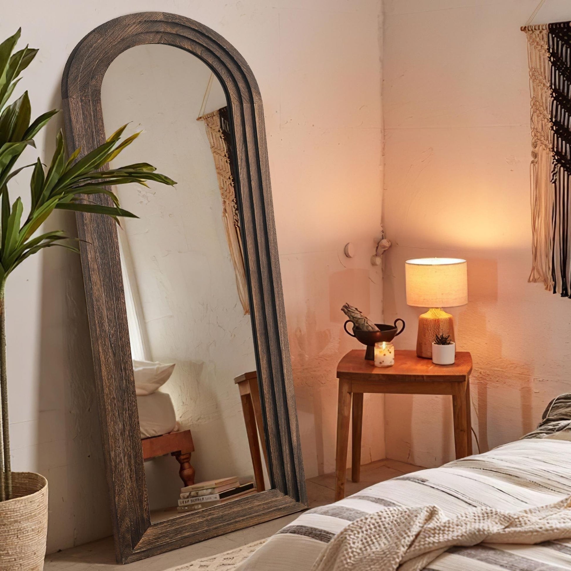 Découvrez le charme intemporel de notre miroir mural chic en bois massif avec dessus arqué, un miroir sur pied alliant harmonieusement charme vintage et praticité contemporaine. Ce miroir de courtoisie, fabriqué en bois massif de première qualité, présente un élégant design arqué qui rehausse le raffinement de n'importe quelle pièce. Son large reflet sur toute la longueur offre une vue d'ensemble de votre tenue, ce qui en fait un choix idéal pour les dressings, les chambres ou les salons où style et fonctionnalité se marient harmonieusement.