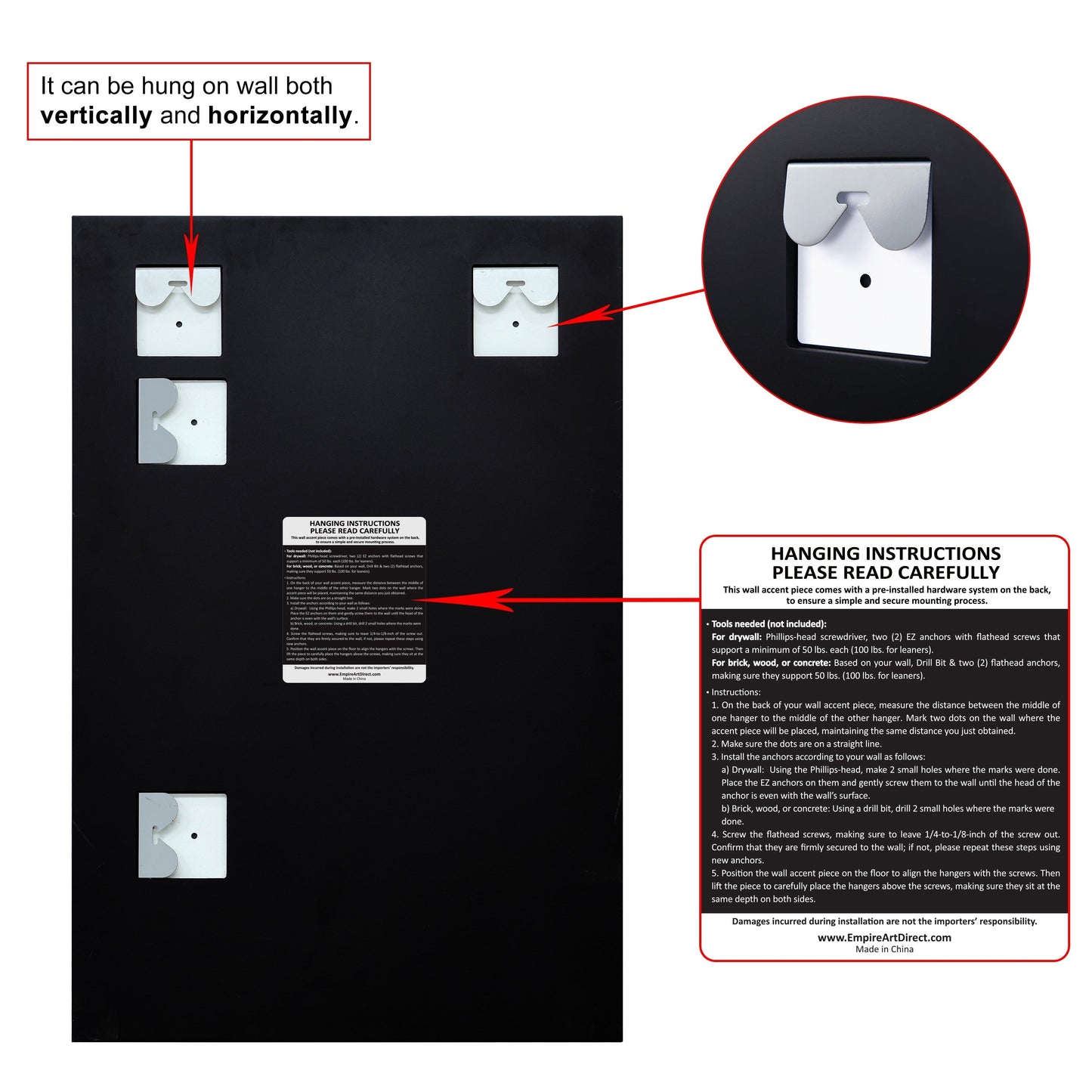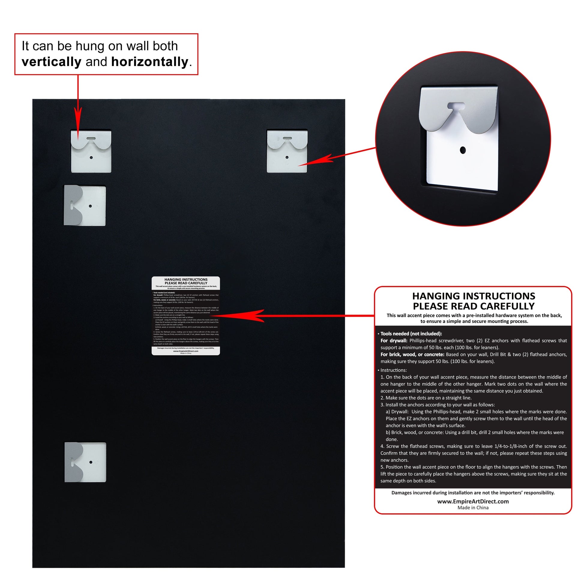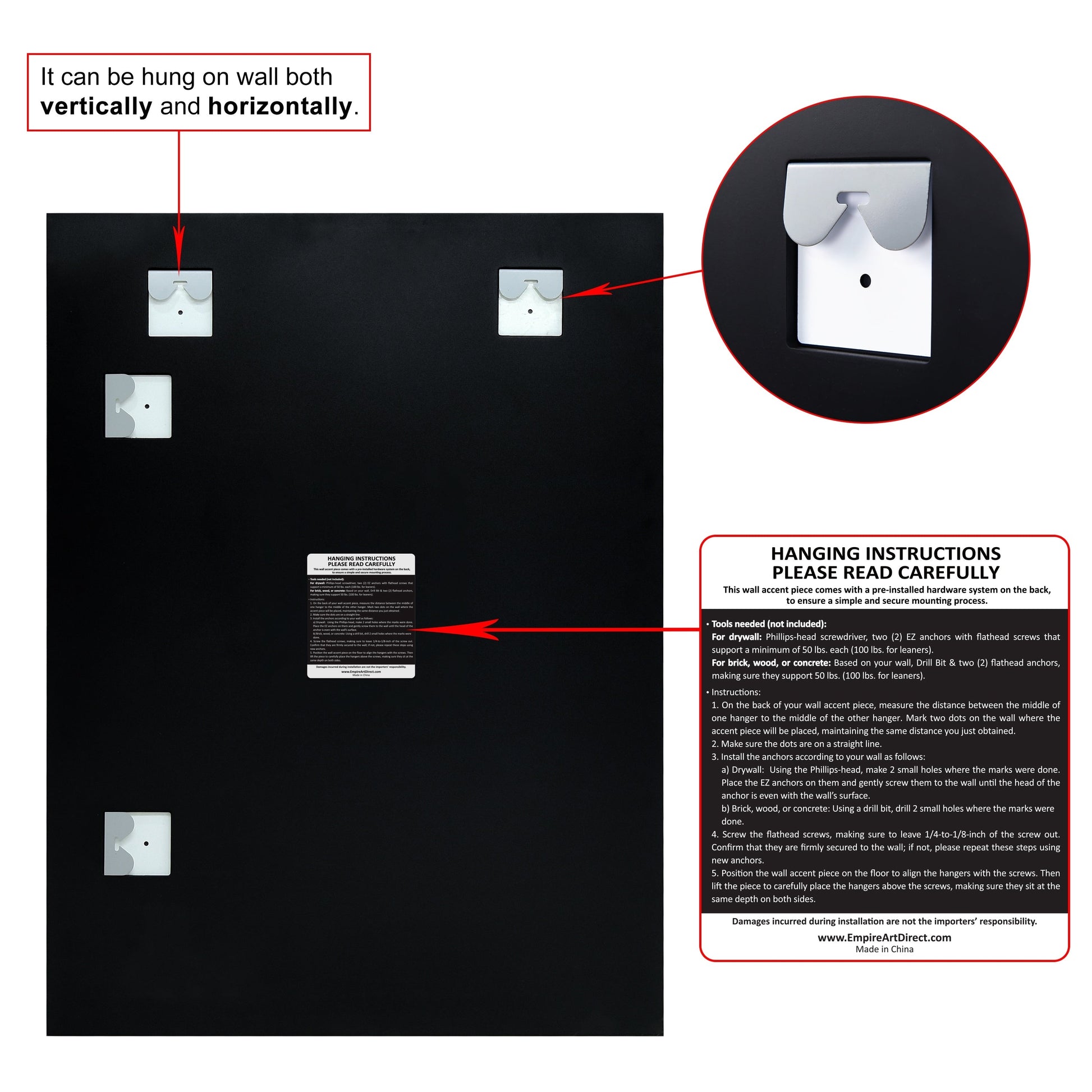 • Can be hung vertically or horizontally