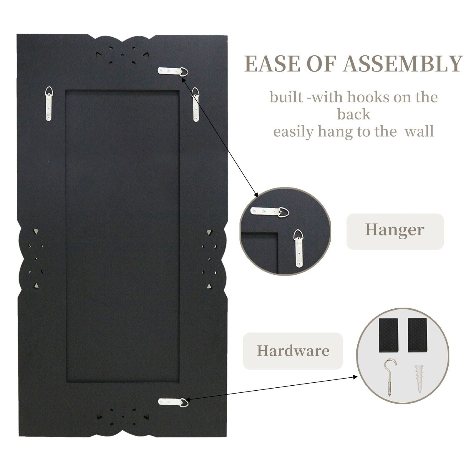 Hung the mirror with four D-ring hooks on the back, both support hanging vertically or horizontally.
