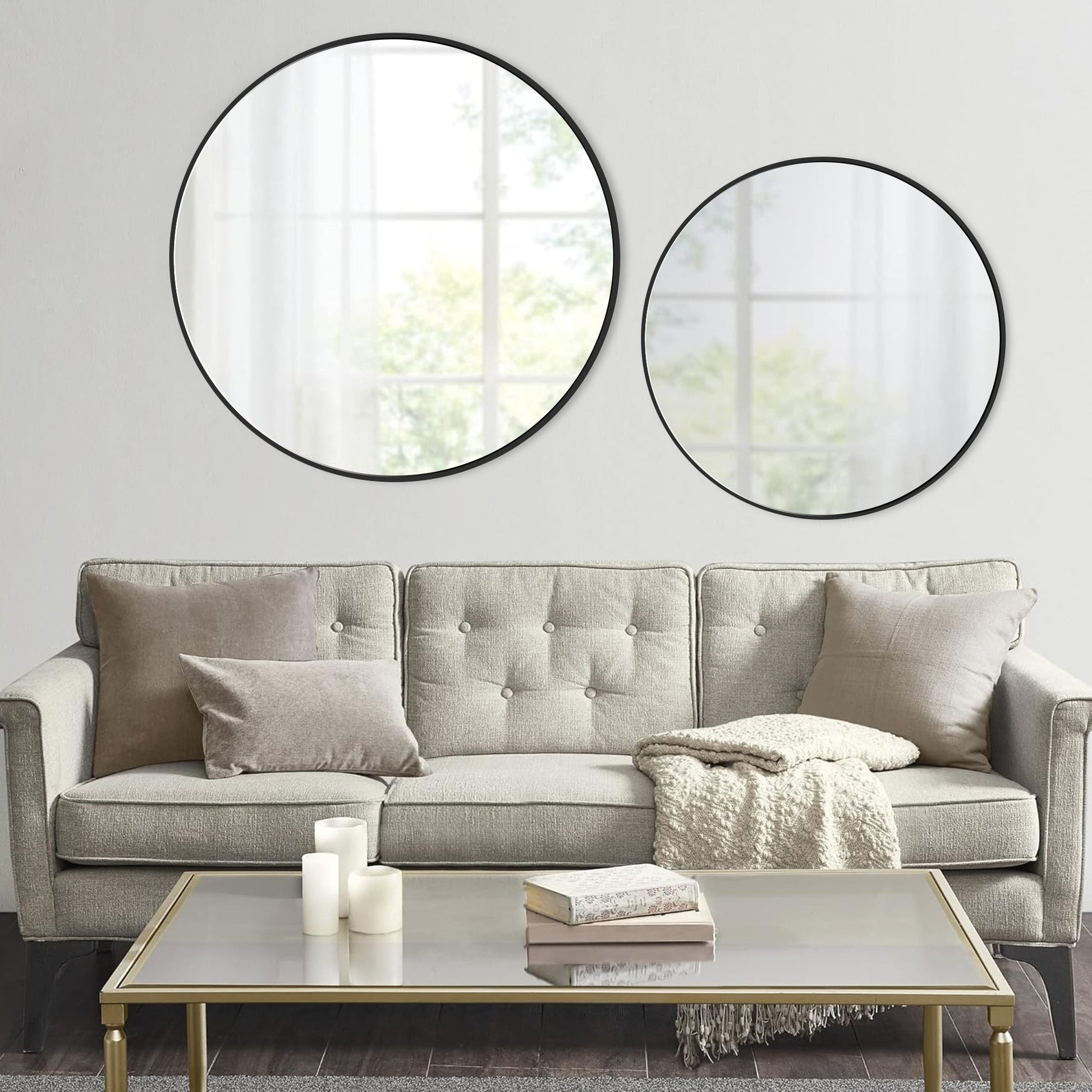 If you love the round mirror trend, and are looking for some inspiration - this is the best for you. The soft shape allows the eye to move effortlessly around the room and makes a statement all at the same time. Beautifully handcrafted, our round mirror for wall hanging is handcrafted with care and attention to detail and design. The round shape and the super-thin frame create a sense of solemn order, extending visually space, depth, and light. A round mirror is placed in the center, and the totals in the surrounding area help to accentuate the three dimensionality of the composition. The American Style Minimalist Bathroom Mirror reflects mottled light and shadow when illuminated, creating a dramatic three dimensional appearance. It adds a charming accent to your walls while serving as functional wall art, completing your modern, rustic, or farmhouse room decor.