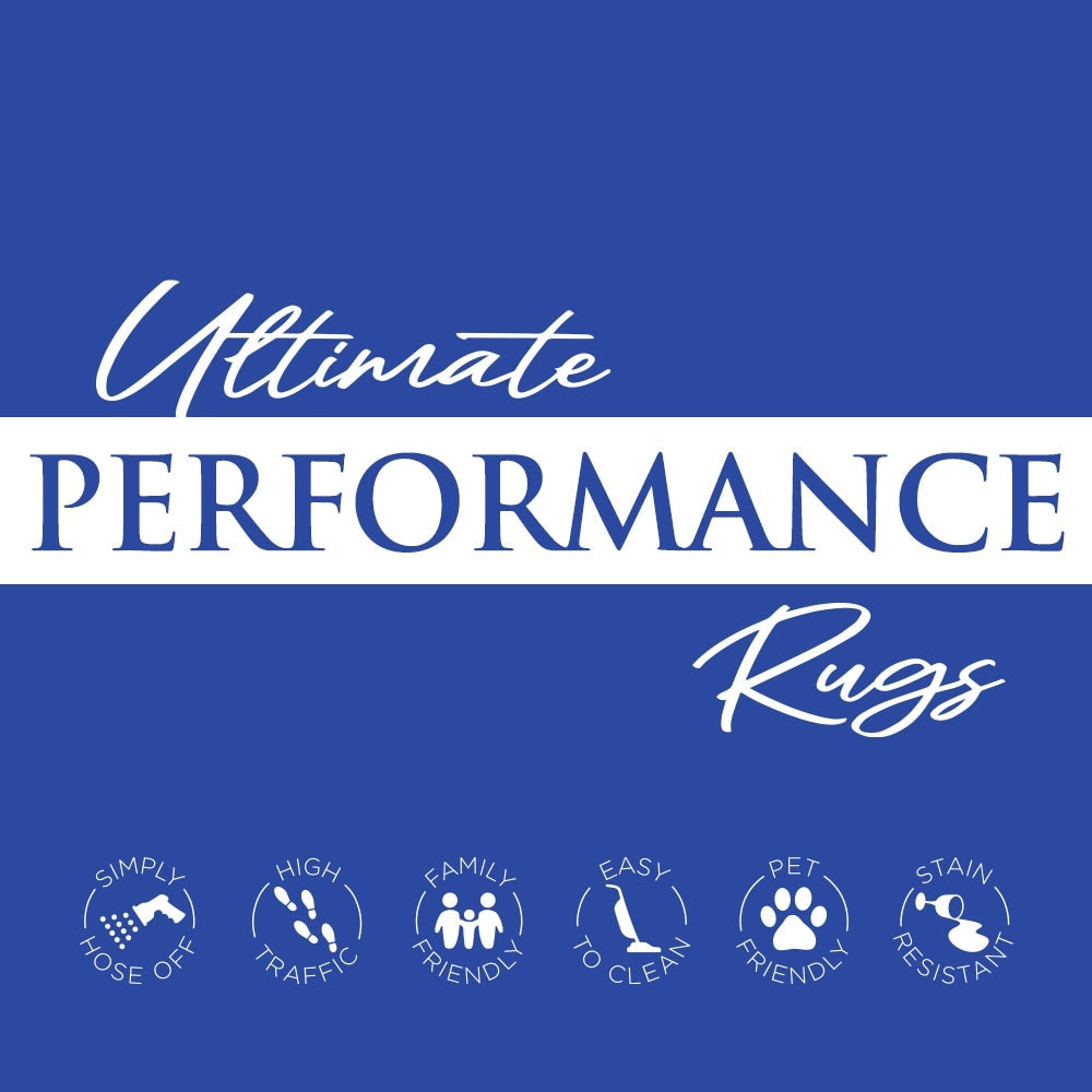 Cleaning and Care: To clean spills on an ultimate performance and indoor/outdoor area rugs, blot as much of the stain as possible with a clean cloth or paper towel, then apply mild soap and water to a clean sponge to remove the remainder of the spill. Allow the area to dry. For cleaning the entire rug surface, spray with a mixture of mild soap and water and rinse with a garden hose.