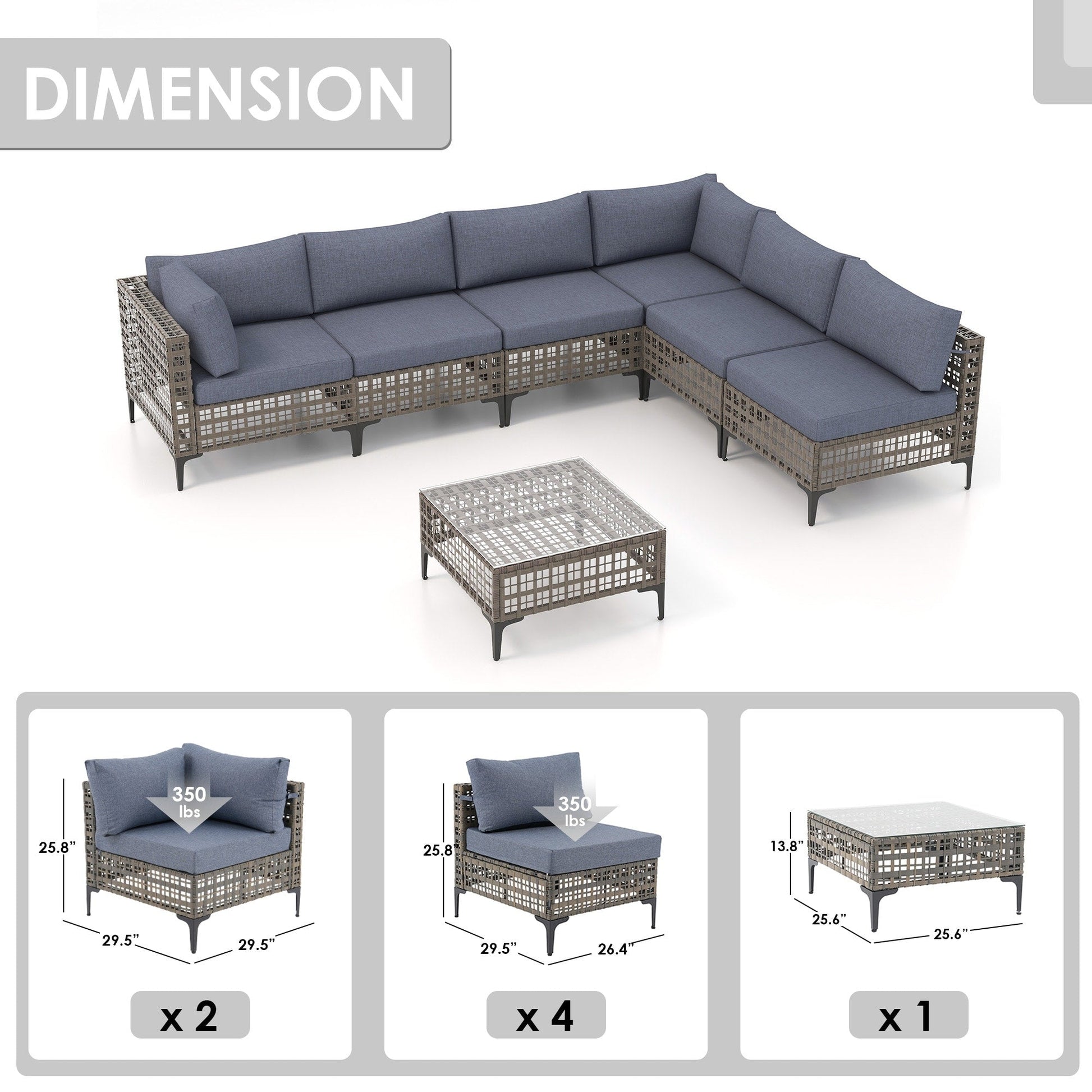 Dimensions des chaises d'angle : 29,5''P * 29,5''L * 25,8''H