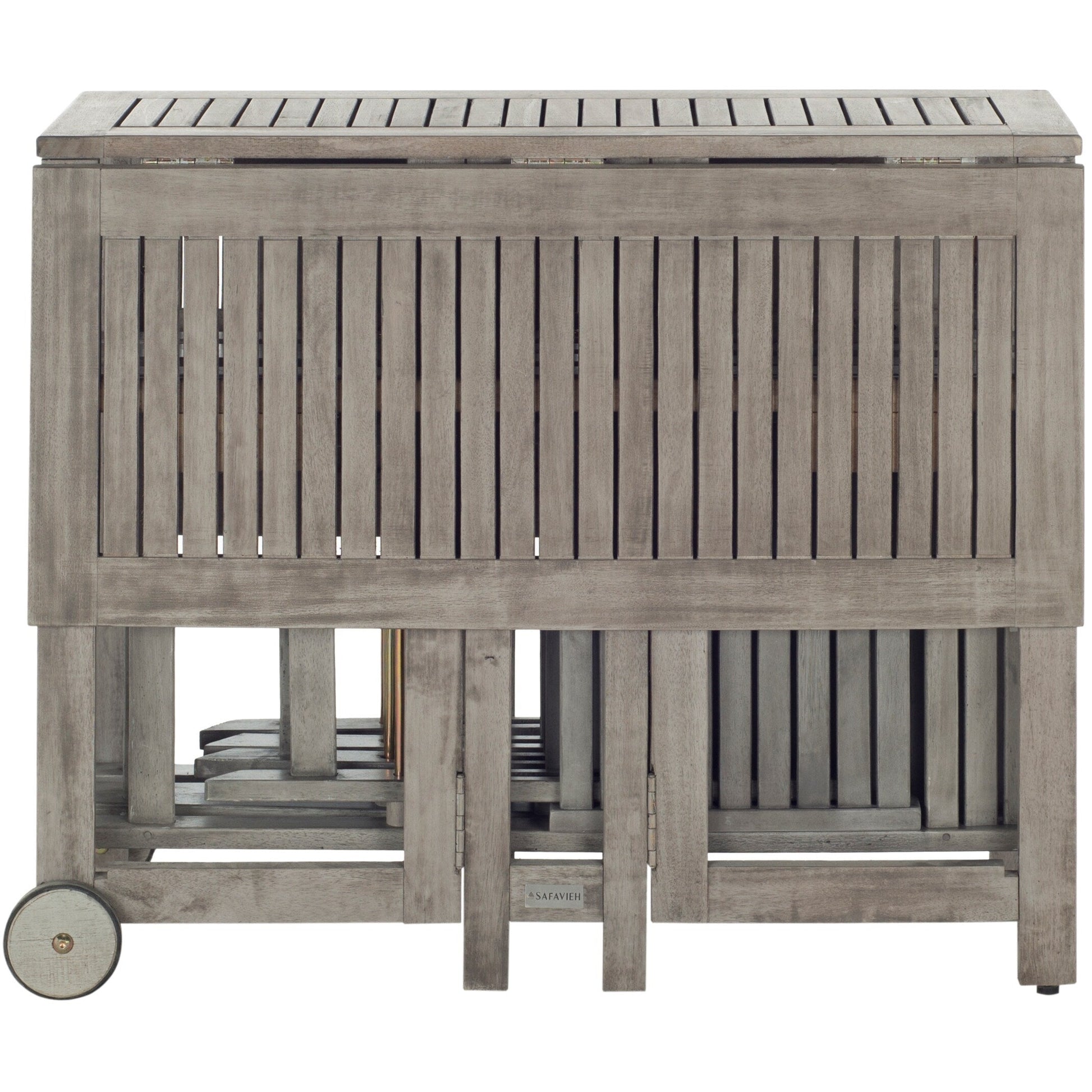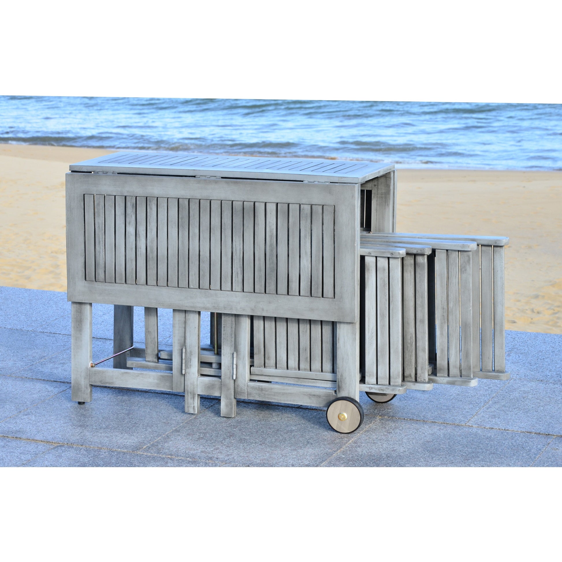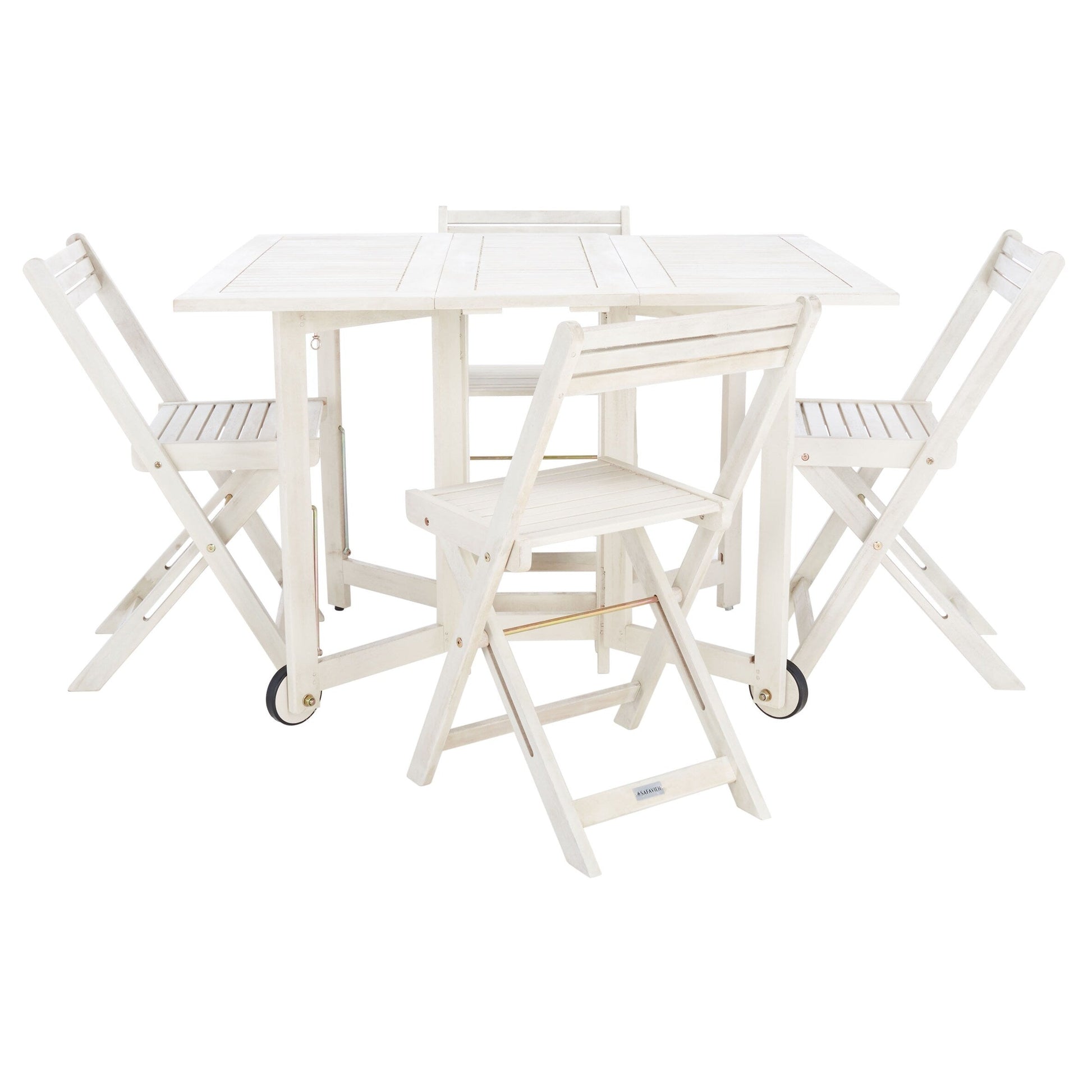 Un ensemble table et chaises de jardin ingénieux et peu encombrant, conçu pour un séjour en plein air agréable. Fabriqué en bois d'acacia écologique, ses quatre chaises de style metteur en scène se replient et se rangent sous une table rectangulaire pliable pour un rangement facile.