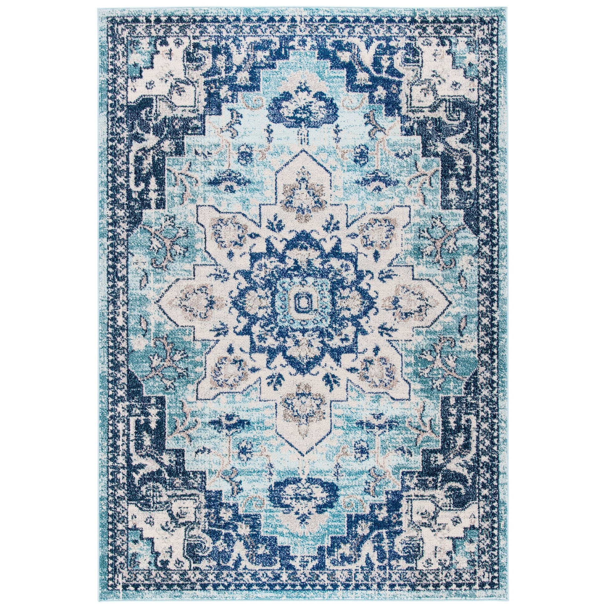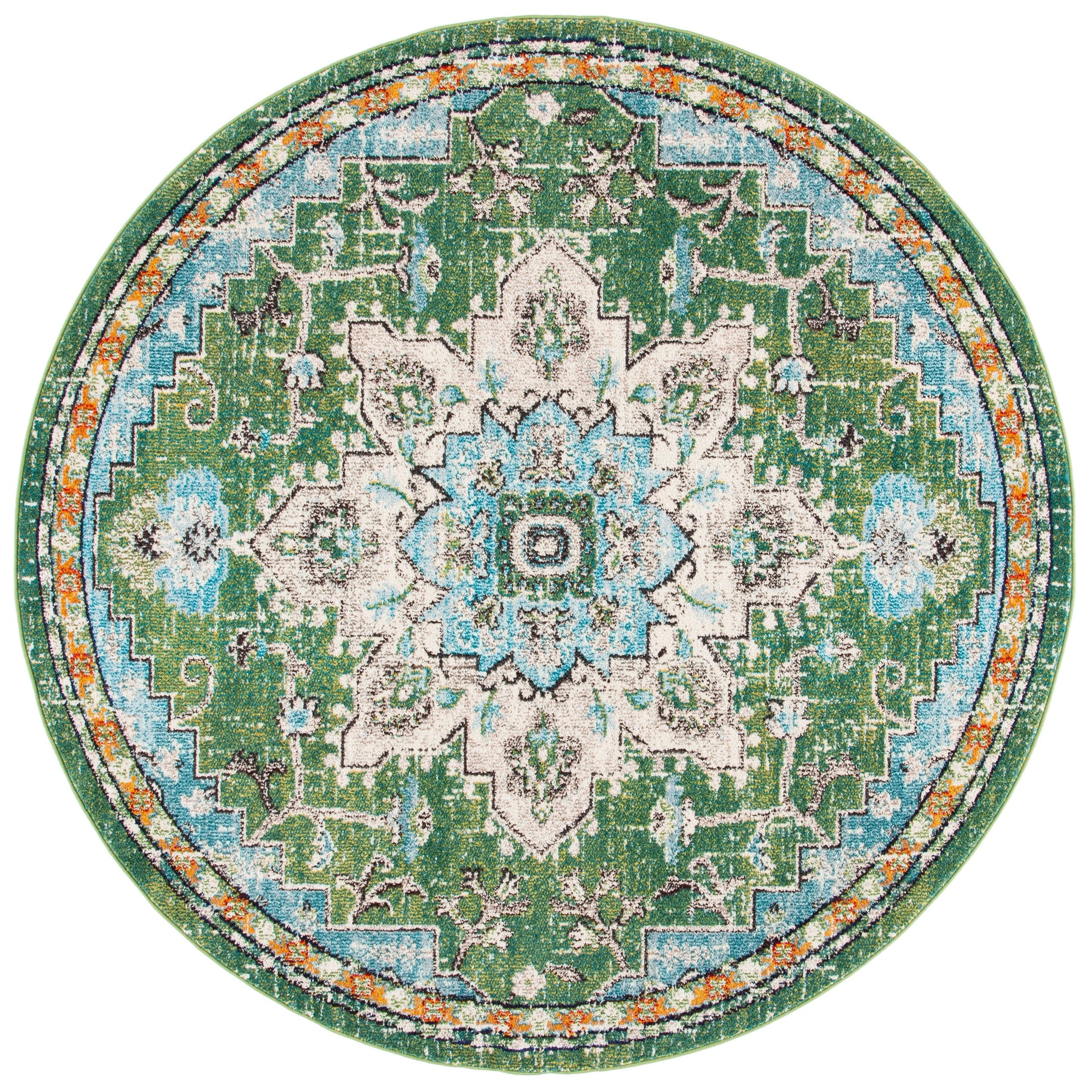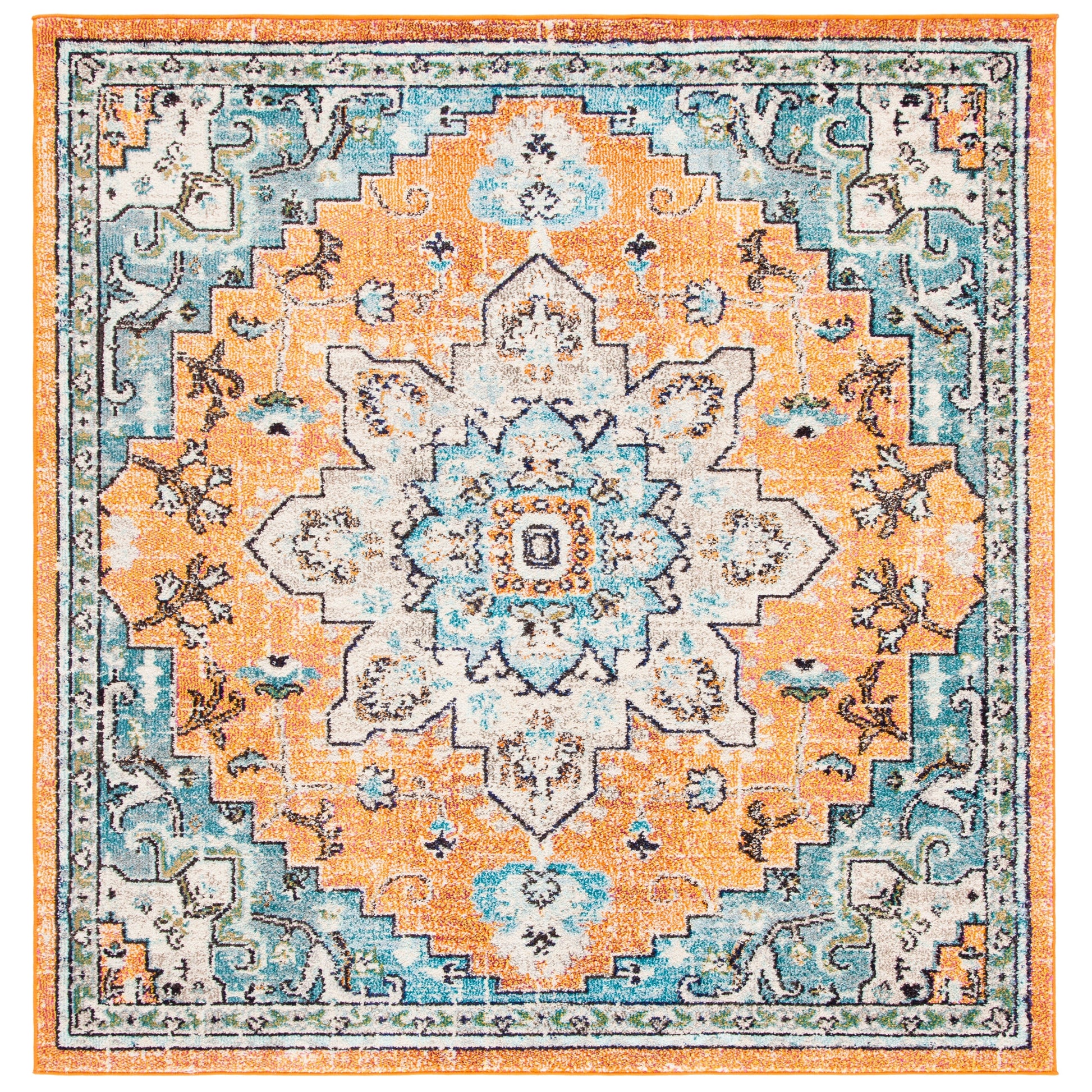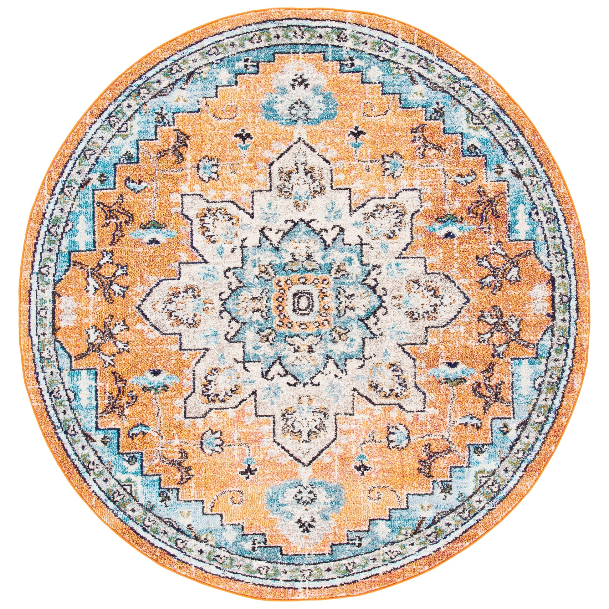 Bring life to your space with the SAFAVIEH Madison Diederike Boho Medallion Distressed Rug. This easy-care machine-woven rug boasts a vintage style and chic pattern that will enhance any room in your home. With a pile height of 0.25 - 0.5 inches, it is virtually non-shedding and stain-resistant, making it perfect for households with kids and pets. Add a touch of beauty to your living room, dining room, bedroom, entryway, nursery, kid's room, playroom, dorm room, study or home office with this playful collection from SAFAVIEH.