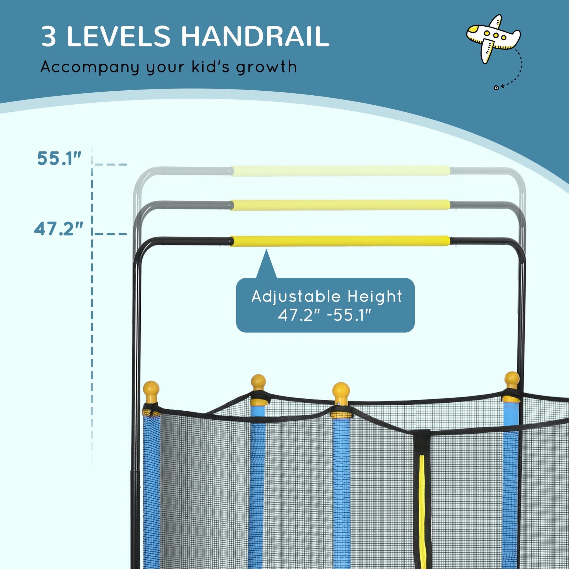 Qaba 4.6' Kids Trampoline with Basketball Hoop, Horizontal...