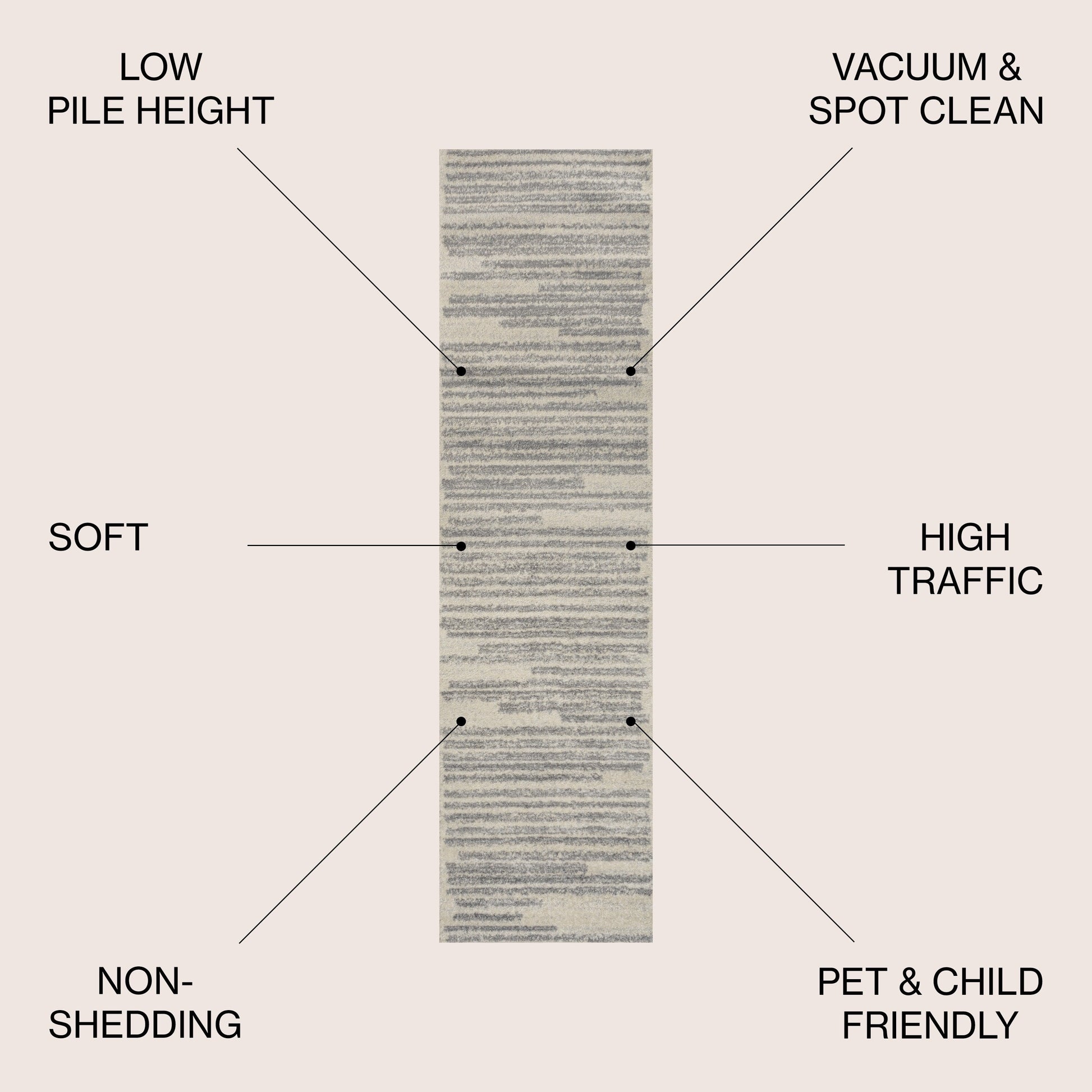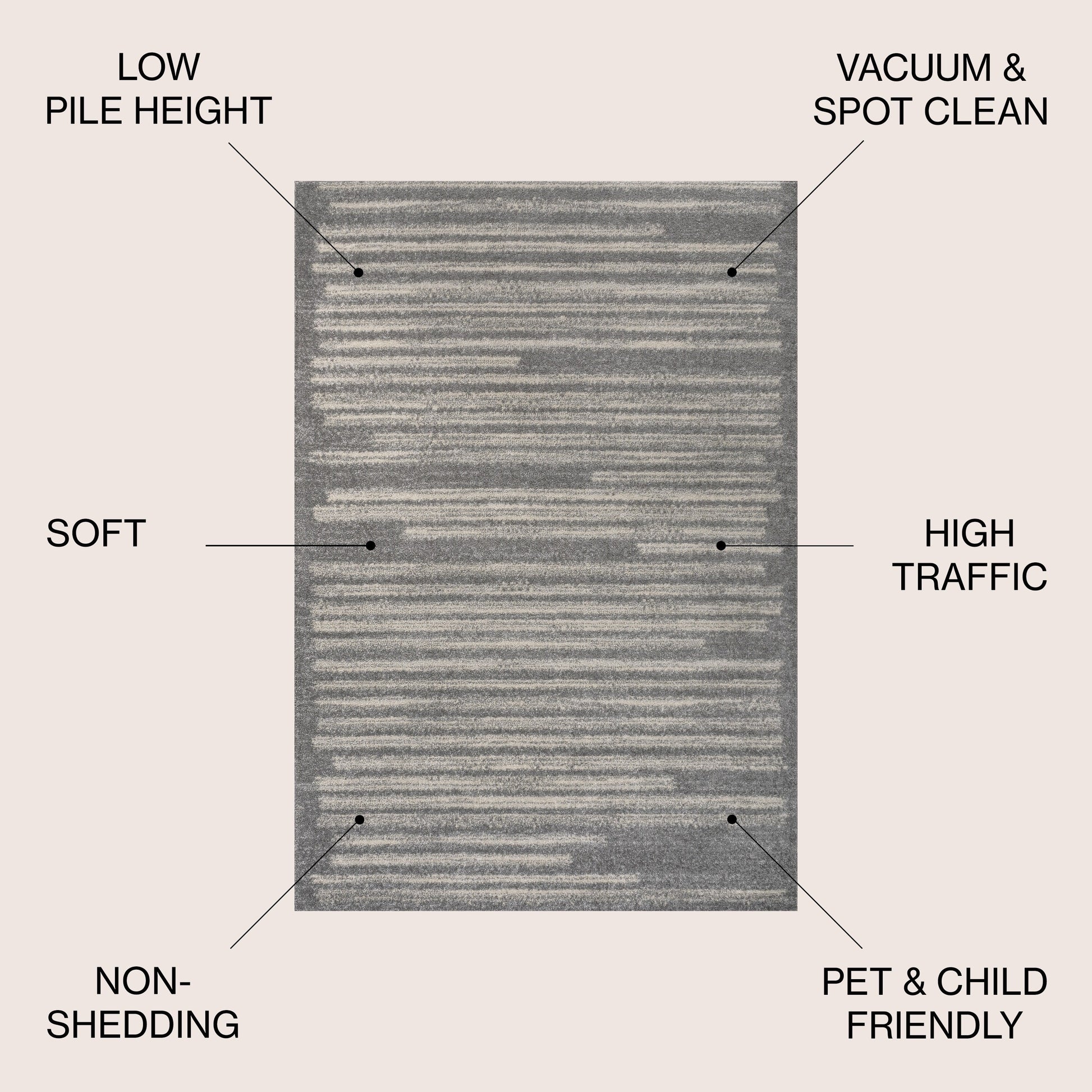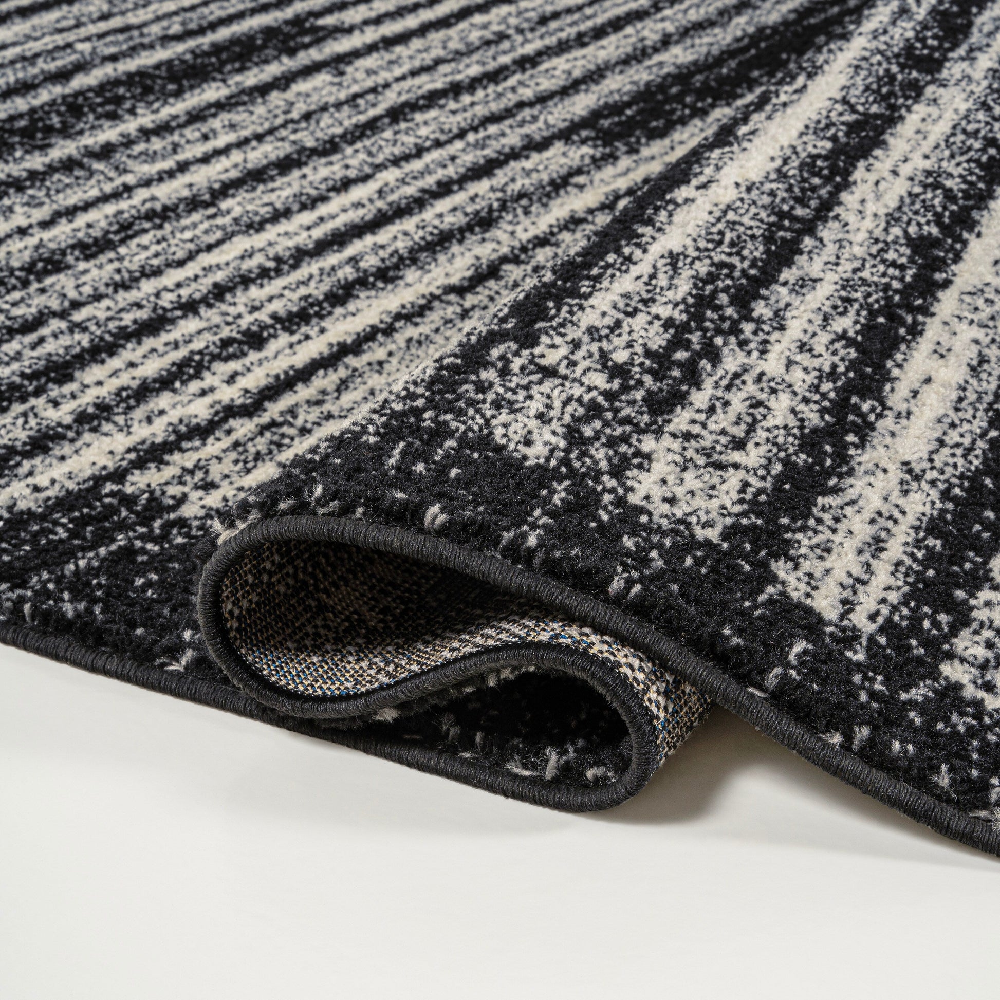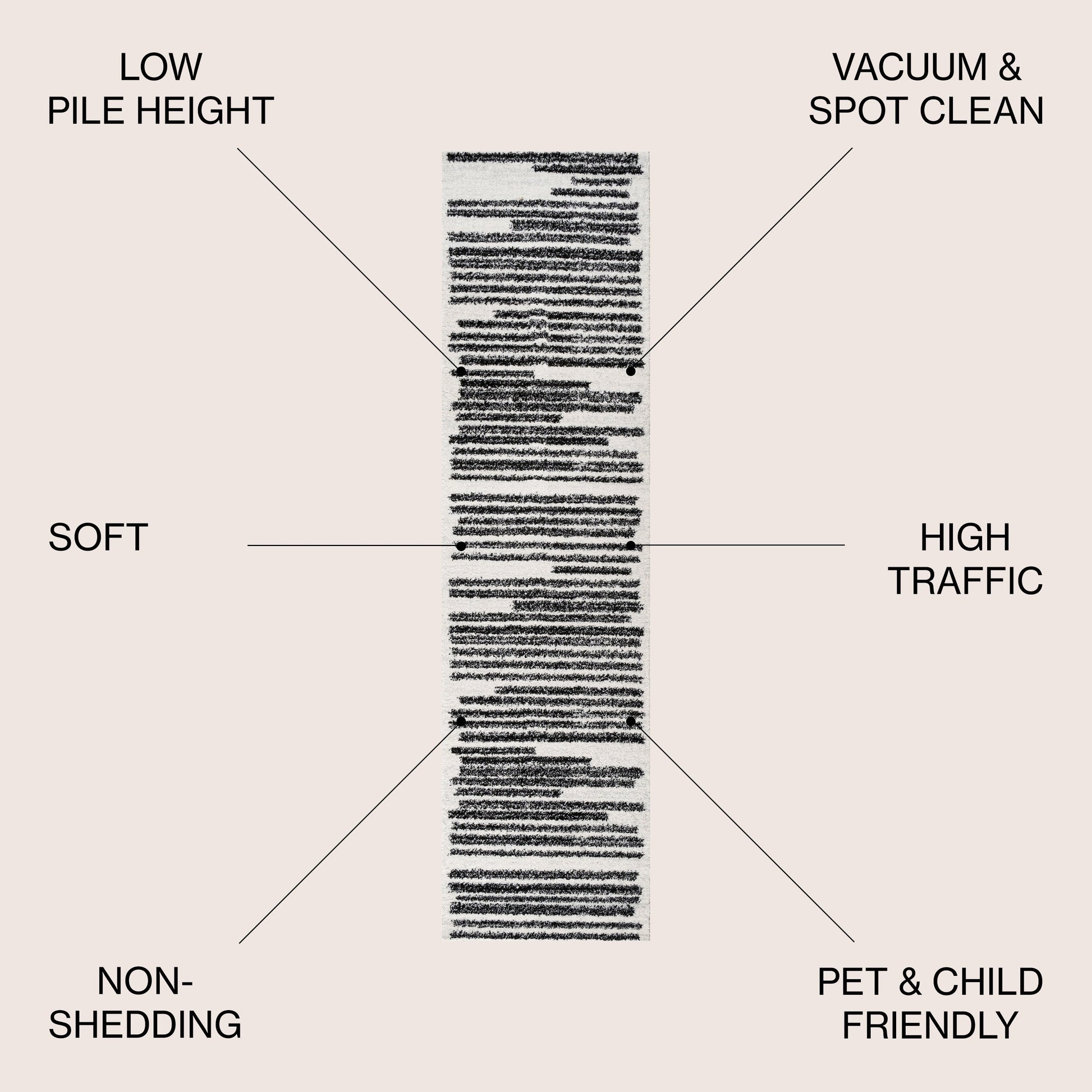 Inspired by vintage Moroccan rugs, our modern striped rug is power-loomed with a short pile. The offset stripe and bar pattern is woven in black on an ivory background; the mingled threads recall traditional handwoven rugs. Add some mid-century style to your home with this easy-care rug.