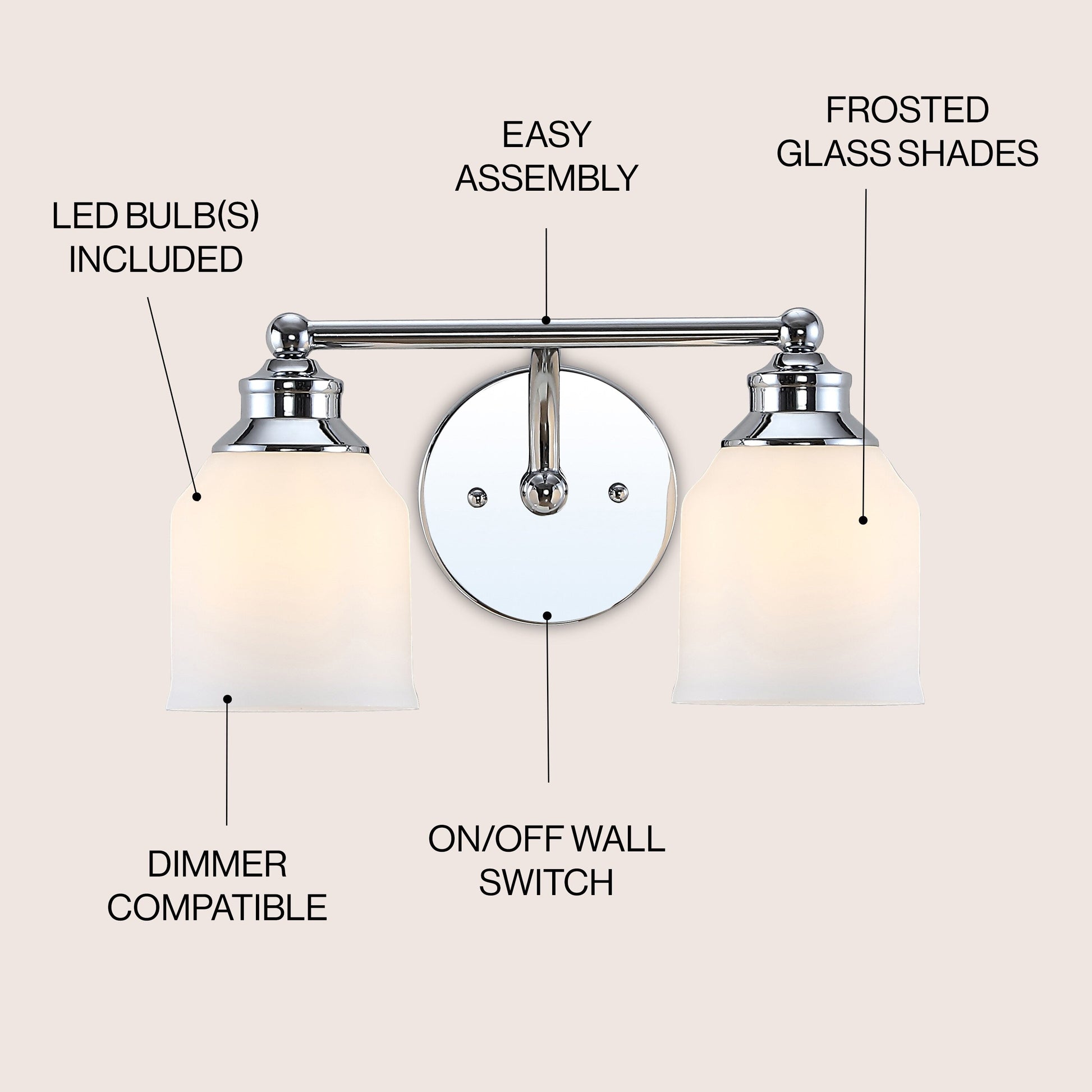 Elevate your urban apartment, cottage or farmhouse with our versatile take on a classic wall light. The included LED bulb casts a warm glow, providing plenty of light. The frosted glass bell shade and sparkling chrome finish add elegant vintage style to your bath vanity, or above a kitchen sink.