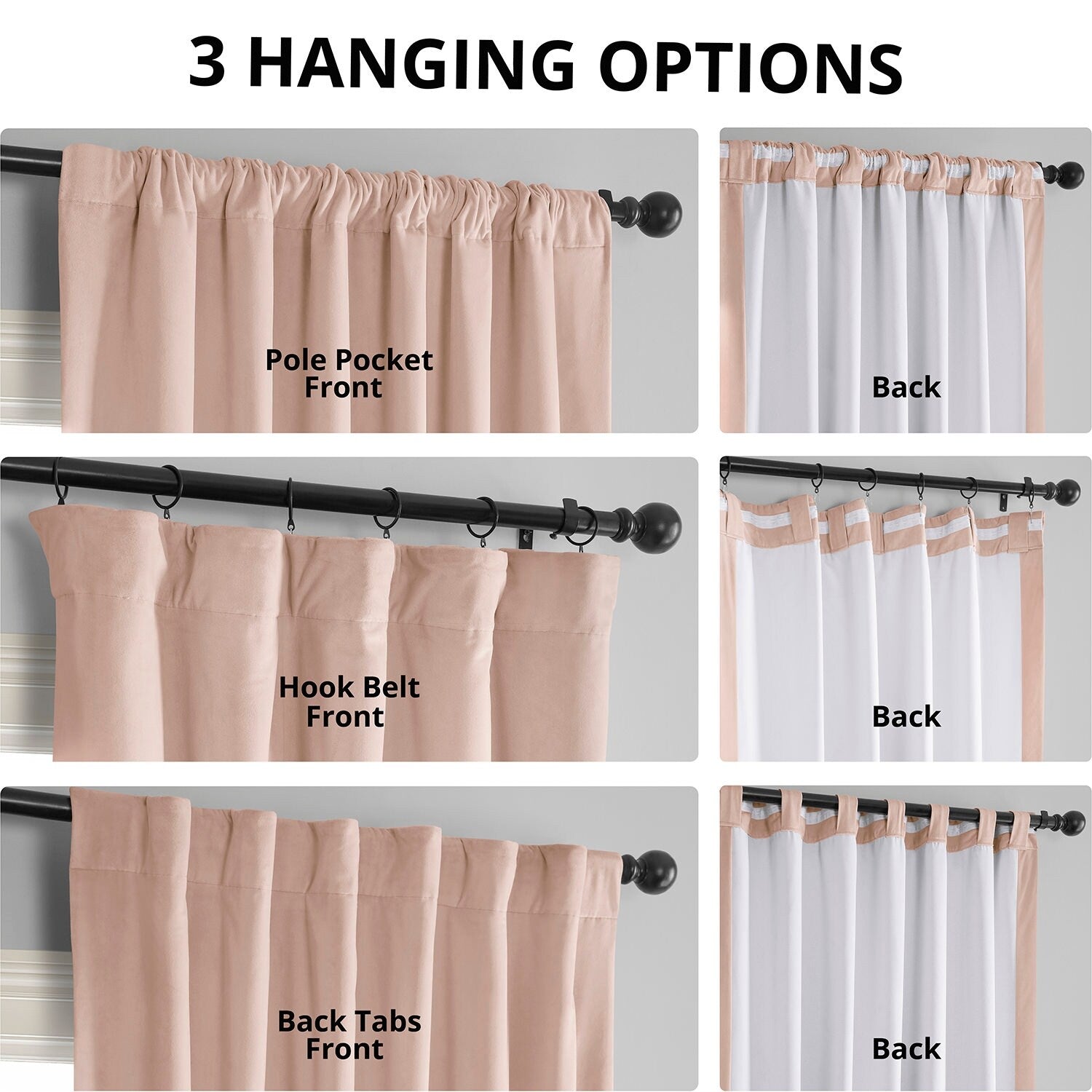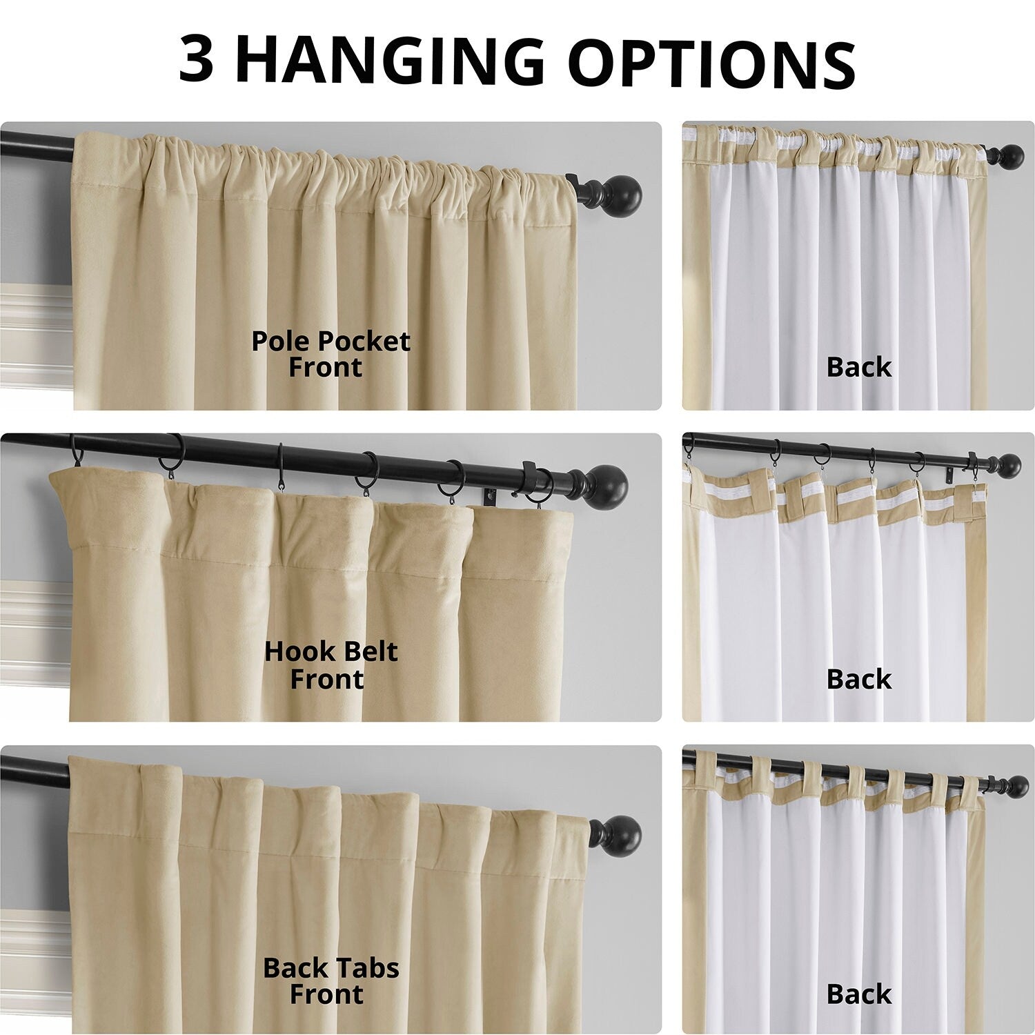 - 3-inch pole pocket header with hook belt and back tabs